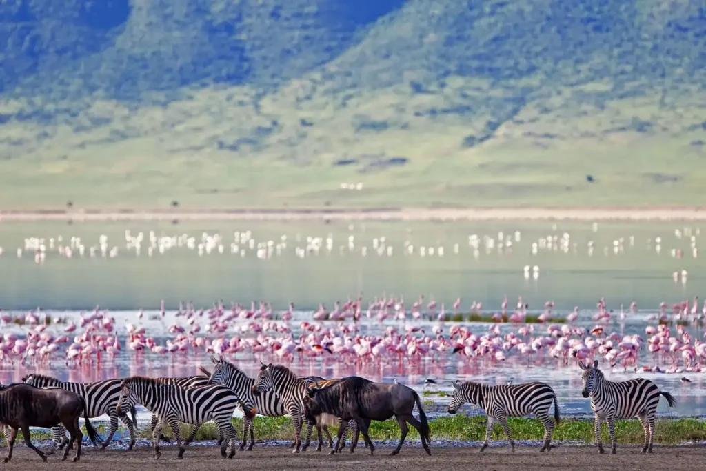 The Ngorongoro Crater is a geological marvel—a volcanic caldera that’s home to over 25,000 animals. Often called “Africa’s Garden of Eden,” it’s a compact yet rich ecosystem where wildlife thrives. On a Tanzania wildlife safari with African Meraviglia Safari, you’ll descend 600 meters into the crater for a game drive unlike any other.